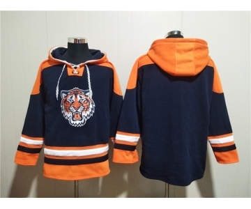 Men's Detroit Tigers Blank Navy Lace-Up Pullover Hoodie