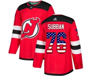 Men's Devils #76 P. K. Subban Red Home USA Flag Stitched Hockey Jersey
