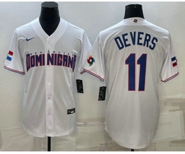 Men's Dominican Republic Baseball #11 Rafael Devers 2023 White World Baseball Classic Stitched Jerseys