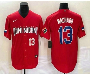 Men's Dominican Republic Baseball #13 Manny Machado 2023 Red World Classic Stitched Jersey
