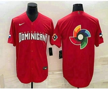 Your Position: Home>NIKE MLB Jerseys>2023 World Baseball Classic>Dominican Republic>Men's Dominican Republic Baseball 2023 Red World Big Logo With Patch Classic Stitched Jerseys