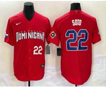 Men's Dominican Republic Baseball #22 Juan Soto 2023 Red World Classic Stitched Jerseys