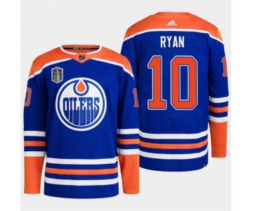 Men's Edmonton Oilers #10 Derek Ryan Royal 2024 Stanley Cup Final Patch Stitched Jersey
