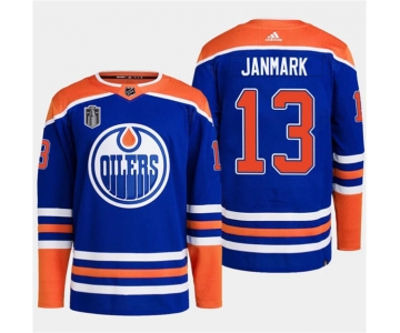 Men's Edmonton Oilers #13 Mattias Janmark Royal 2024 Stanley Cup Final Patch Stitched Jersey