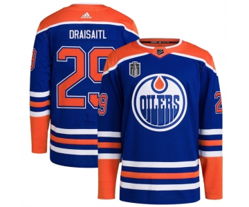 Men's Edmonton Oilers #29 Leon Draisaitl Royal 2024 Stanley Cup Final Patch Stitched Jersey