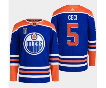 Men's Edmonton Oilers #5 Cody Ceci Royal 2024 Stanley Cup Final Patch Stitched Jersey