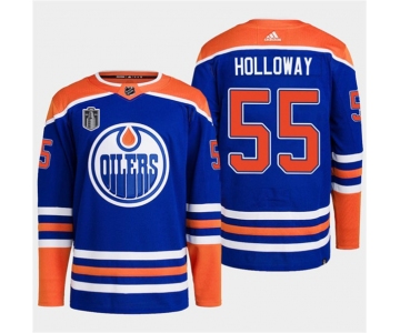 Your Position: Home>NHL Jerseys>2024 NHL Stanley Cup>Men's Oilers Stanley Cup Final>Men's Edmonton Oilers #55 Dylan Holloway Royal 2024 Stanley Cup Final Patch Stitched Jersey
