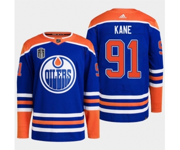 Men's Edmonton Oilers #91 Evander Kane Royal 2024 Stanley Cup Final Patch Stitched Jersey