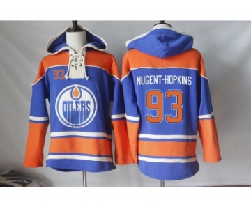 Men's Edmonton Oilers #93 Nugent-Hopkins Orange Sawyer Hooded Sweatshirt Stitched NHL Jersey