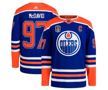 Men's Edmonton Oilers #97 Connor McDavid Royal 2024 Stanley Cup Final Patch Stitched Jersey