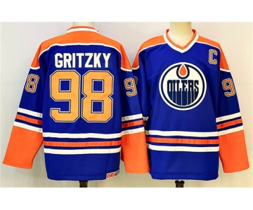 Your Position: Home>NHL Jerseys>Edmonton Oilers>Men>Men's Edmonton Oilers #98 Wayne Gretzky Royal 2025 With C Patch Stitched Hockey Jersey