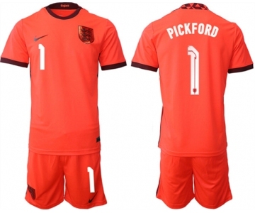 Men's England #1 Pickford Orange Away Soccer Jersey Suit