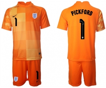 Men's England #1 Pickford Orange Goalkeeper Soccer Jersey Suit