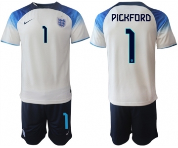 Men's England #1 Pickford White Home Soccer Jersey Suit