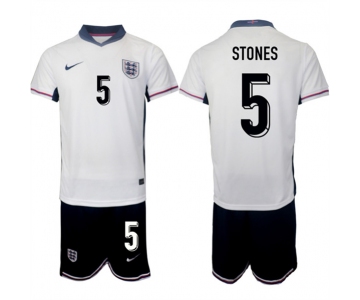 Men's England #5 John Stones 2024-25 White Home Soccer Jersey Suit