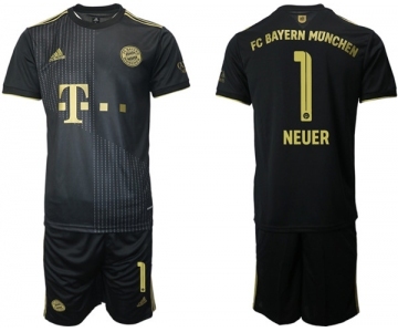 Men's FC Bayern M端nchen #1 Neuer Black Away Soccer Jersey with Shorts