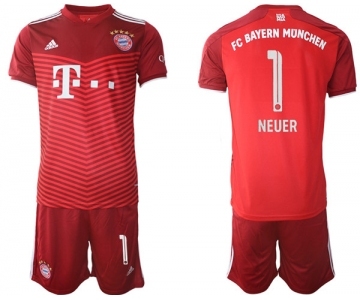 Men's FC Bayern M端nchen #1 Neuer Red Home Soccer Jersey with Shorts
