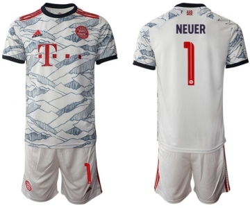 Men's FC Bayern M端nchen #1 Neuer White Away Soccer Jersey with Shorts