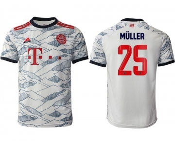 Men's FC Bayern München #25 Thomas Müller White Away Soccer Jersey