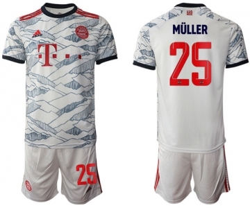 Men's FC Bayern München #25 Thomas Müller White Away Soccer Jersey With Shorts