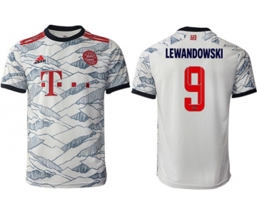 Men's FC Bayern M端nchen #9 Robert Lewandowski White Away Soccer Jersey