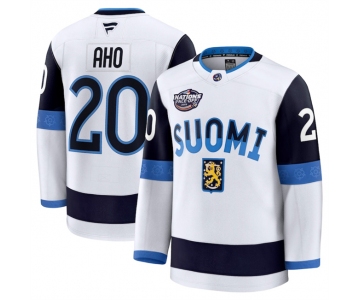Men's Finland #20 Sebastian Aho White 2025 4 Nations Face-Off Premium Stitched Jersey