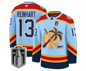 Men's Florida Panthers #13 Sam Reinhart Blue 2025 Stanley Cup Final Premium Stitched NHL Hockey Jersey