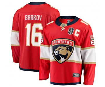 Men's Florida Panthers #16 Aleksander Barkov Red 2025 Stanley Cup Final Home Stitched Hockey Jersey