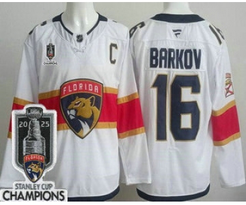 Men's Florida Panthers #16 Aleksander Barkov White 2025 Stanley Cup Champions Authentic Jersey