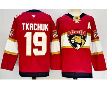 Men's Florida Panthers #19 Matthew Tkachuk Red 2024-25 Home With A Patch Stitched Hockey Jersey