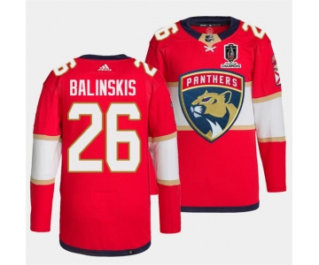 Men's Florida Panthers #26 Uvis Balinskis Red Home 2024 Stanley Cup Champions Stitched Jersey