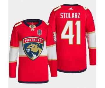 Your Position: Home>NHL Jerseys>2024 NHL Stanley Cup>Men's Panthers Stanley Cup Final>Men's Florida Panthers #41 Anthony Stolarz Red 2024 Stanley Cup Final Patch Stitched Jersey