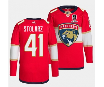 Your Position: Home>NHL Jerseys>2024 NHL Stanley Cup>Men's Panthers Stanley Cup Final>Men's Florida Panthers #41 Anthony Stolarz Red Home 2024 Stanley Cup Champions Stitched Jersey