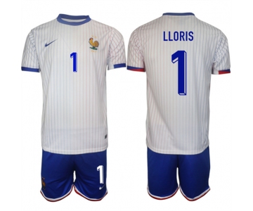 Men's France #1 Hugo Lloris White 2024-25 Away Soccer Jersey Suit