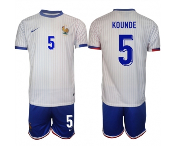 Men's France #5 Jules Koundé White 2024-25 Away Soccer Jersey Suit