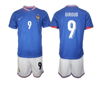 Men's France #9 Olivier Giroud Blue 2024-25 Home Soccer Jersey Suit