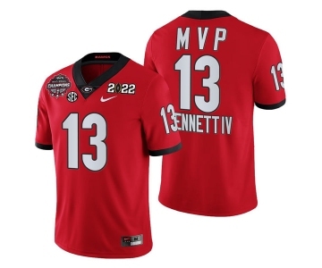Mens Georgia Bulldogs #13 Stetson Bennett IV Red 2021-22 National Champions College Football Game MVP Jersey