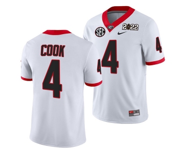 Men’s Georgia Bulldogs #4 James Cook 2022 Patch White College Football Stitched Jersey