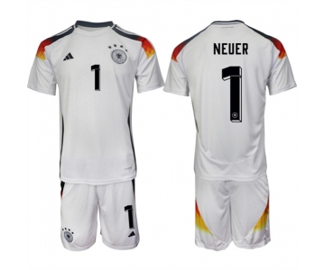 Men's Germany #1 Manuel Neuer White 2024-25 Home Soccer Jersey Suit
