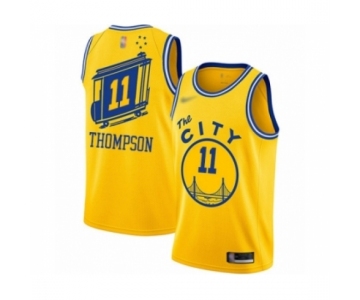 Men's Golden State Warriors #11 Klay Thompson Authentic Gold Hardwood Classics Basketball Jersey - The City Classic Edition