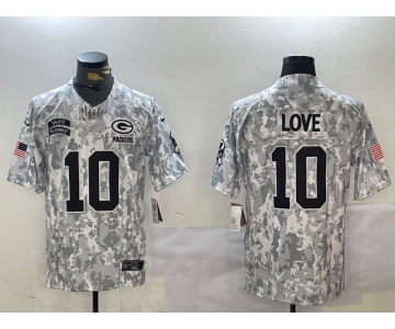 Men's Green Bay Packers #10 Jordan Love 2024 Arctic Camo Salute To Service Limited Stitched Football Jersey
