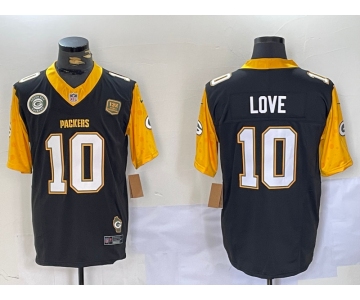 Men's Green Bay Packers #10 Jordan Love Black White Gold 2024 F.U.S.E. Home Patch Vapor Untouchable Limited Stitched Jersey