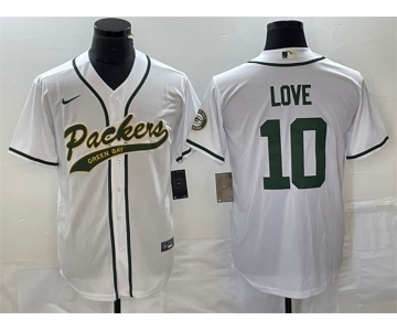 Men's Green Bay Packers #10 Jordan Love White Cool Base Stitched Baseball Jersey