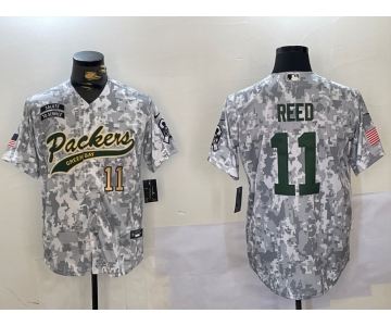 Men's Green Bay Packers #11 Jayden Reed 2024 Arctic Camo Salute To Service Stitched Baseball Jerseys