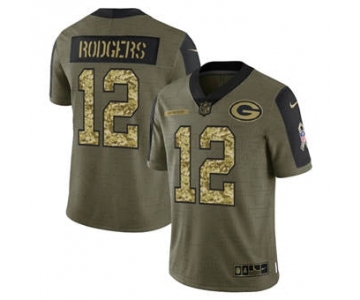 Men's Green Bay Packers #12 Aaron Rodgers 2021 Olive Camo Salute To Service Limited Stitched Football Jersey