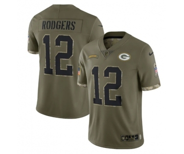 Men's Green Bay Packers #12 Aaron Rodgers 2022 Olive Salute To Service Limited Stitched Jersey