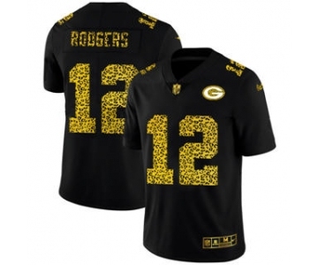 Men's Green Bay Packers #12 Aaron Rodgers Black Leopard Print Fashion Vapor Limited Football Jersey