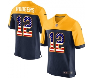 Men's Green Bay Packers #12 Aaron Rodgers Elite Navy Blue Alternate USA Flag Fashion Football Jersey