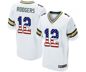 Men's Green Bay Packers #12 Aaron Rodgers Elite White Road USA Flag Fashion Football Jersey