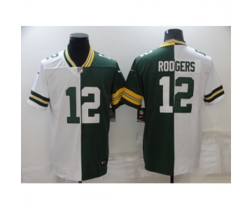 Men's Green Bay Packers #12 Aaron Rodgers Green White Limited Split Fashion Football Jersey